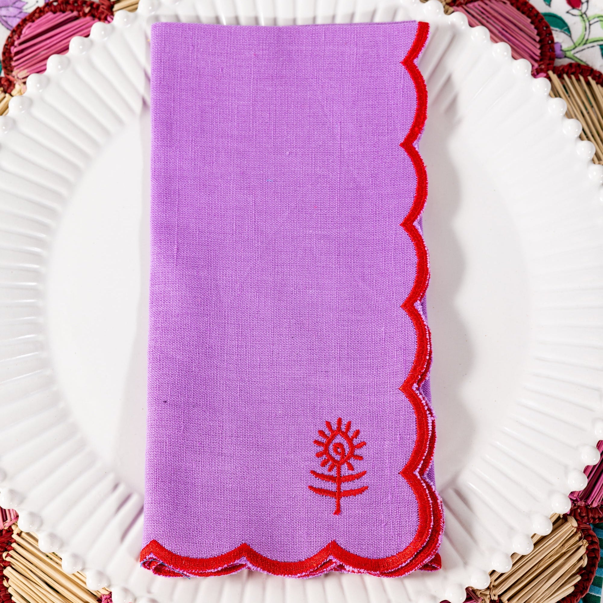 Icon Linen Napkins in Lilac and Cherry, Set of 4