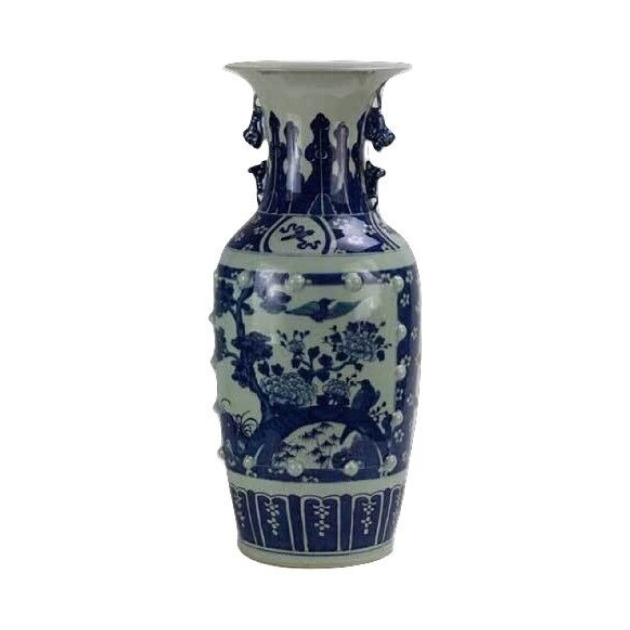 Transform your space with the stunning Extra Large Bird Scene Vase, an impressive piece that combines artistic detail with bold color. This vase is a captivating focal point, perfect for adding sophistication and grandeur to any room. Enhanced with raised dots that add texture and depth to the design, making the artwork come alive.