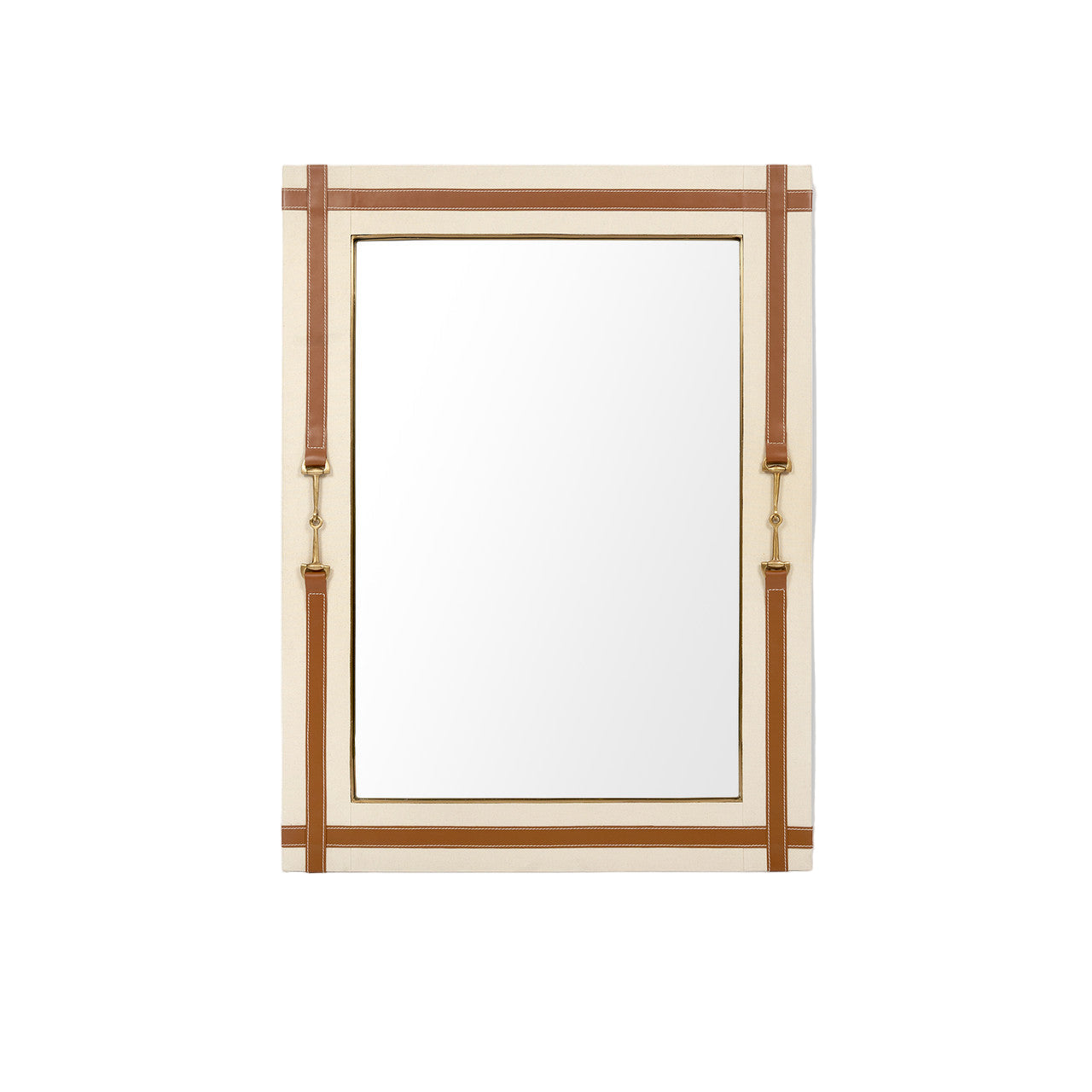 The Buckley Mirror exudes equestrian charm through its thoughtful and sophisticated design. The frame is meticulously wrapped in canvas, creating a subtle texture that pairs beautifully with a top-stitched leather ribbon. This elegant detail is accented by two antique brass horse bits, adding a touch of classic chic. Ideal for enhancing both modern and traditional interiors, the Buckley Mirror serves as a refined statement piece with enduring appeal.