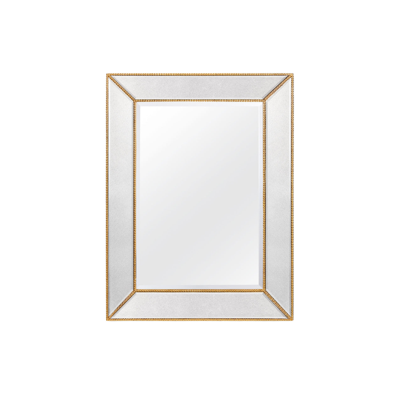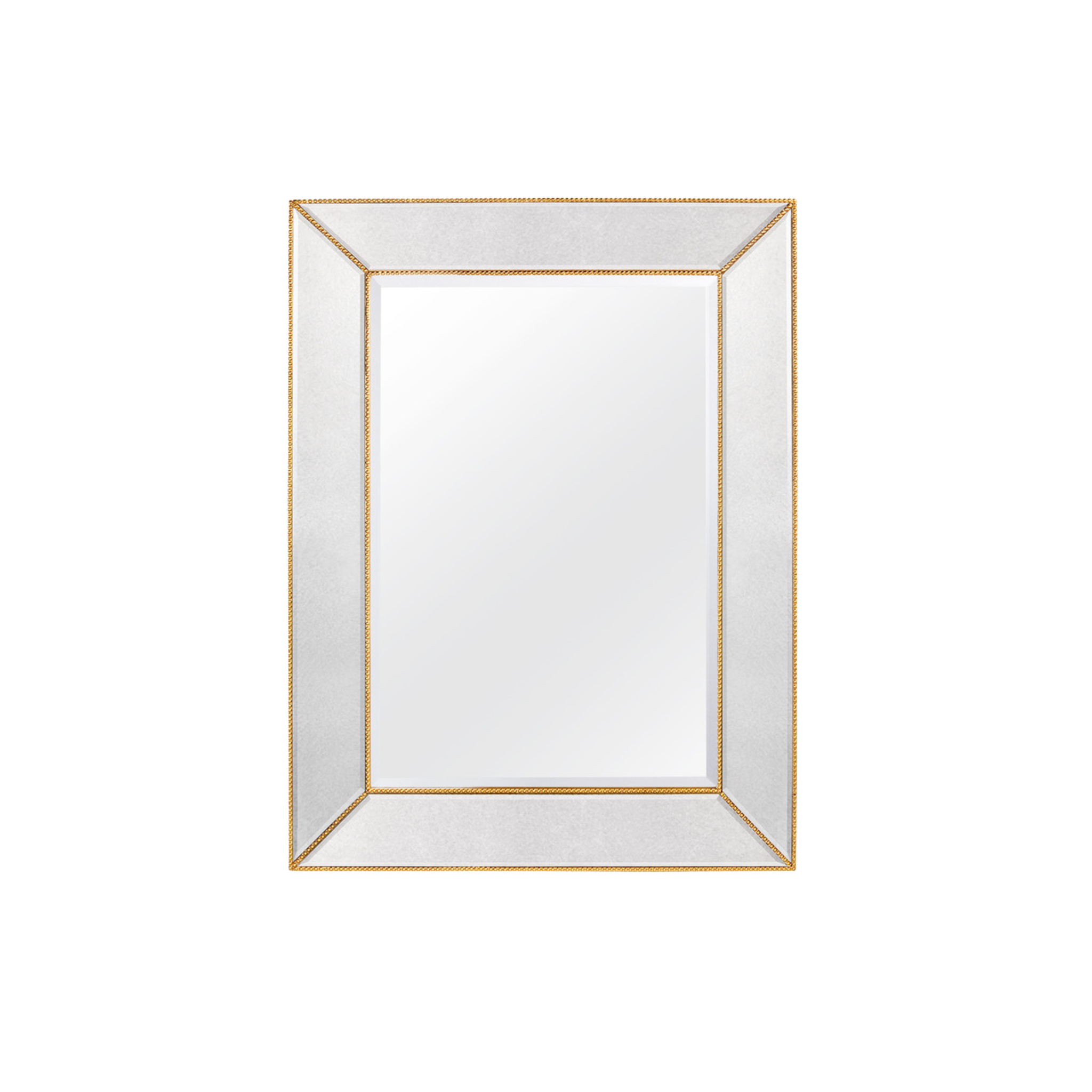 The Hadley Mirror embodies neoclassical beauty with its refined design. A lovely gold leaf beaded edge frames the piece, adding a touch of shimmer. Surrounding the central panel of clear mirror is a lightly antiqued mirror frame, creating a layered and nuanced look. Subtly romantic, the Hadley enhances any space with its timeless charm and understated sophistication.