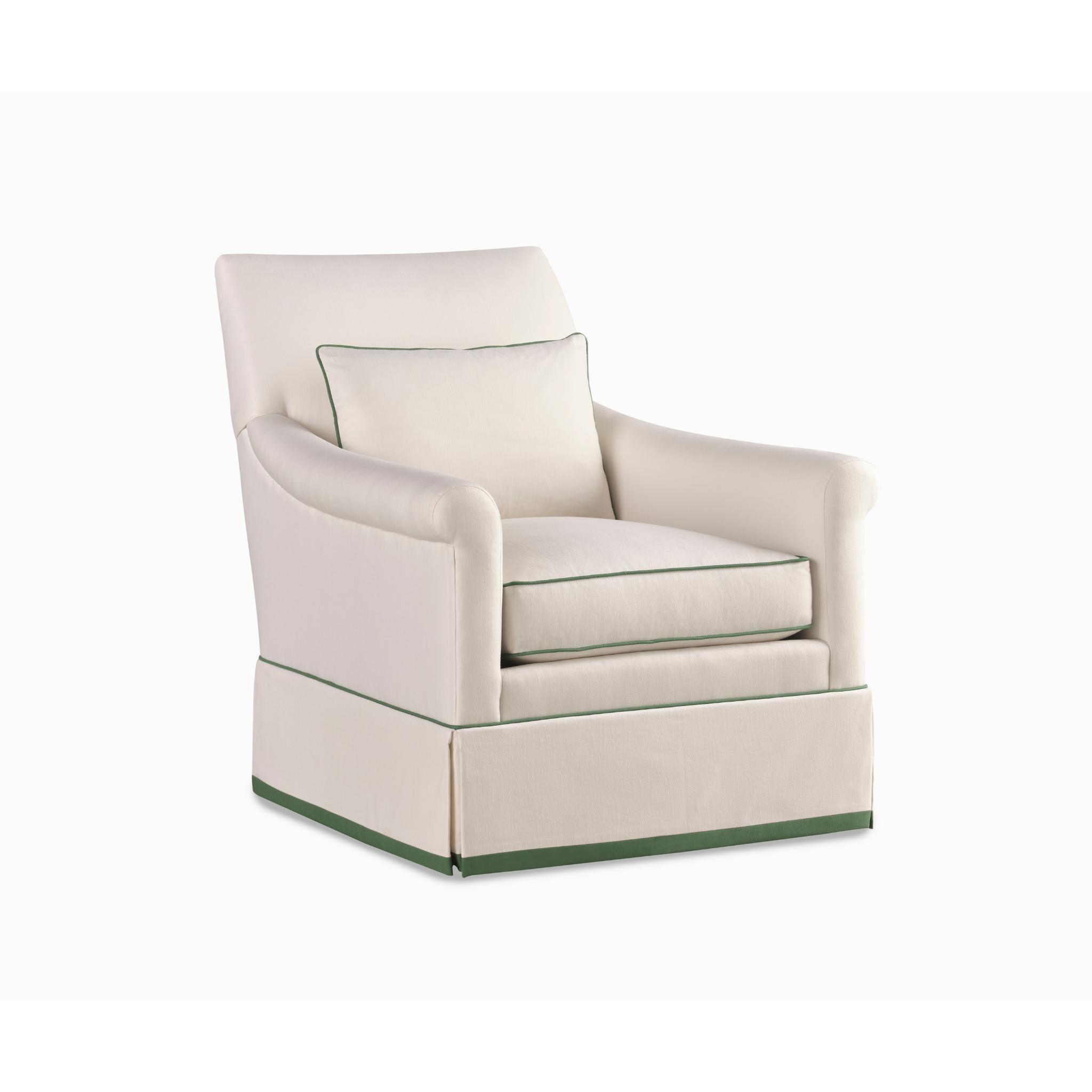 Defined by sleek, slender lines, Jasmine’s silhouette draws the eye from top to bottom—over a subtle, sweeping saddle back and exposed wood tapered legs with a ball detail at the base. With an easy recline, the chair evokes the relaxed comfort of a chaise when paired with its matching elongated ottoman. Now available with swivel functionality.