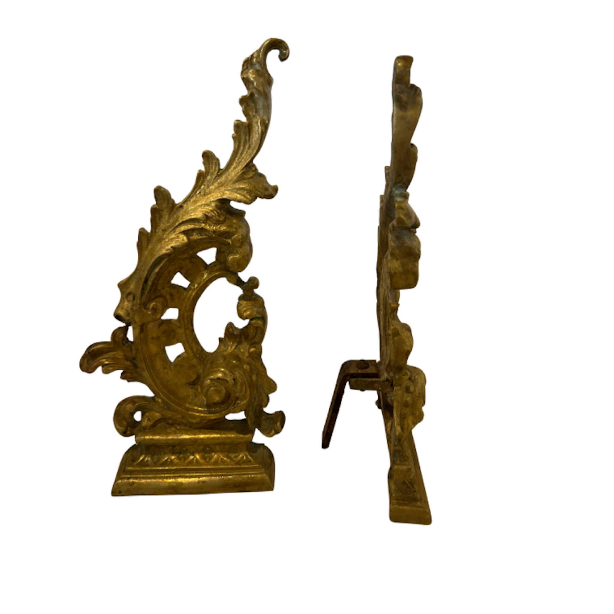 Vintage Brass Acanthus Andirons, Set of 2