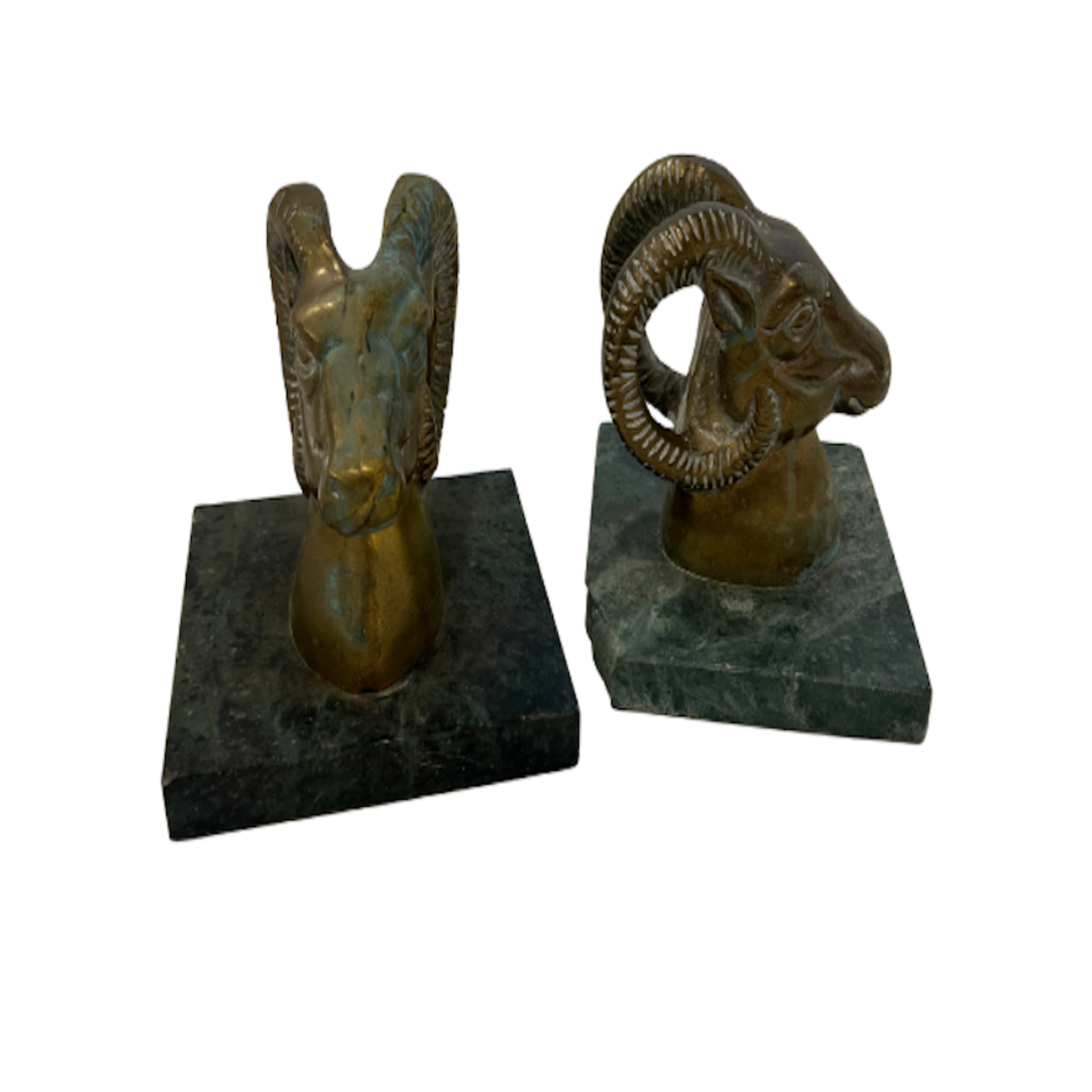Vintage Brass and Marble Ram Heads, Set of 2