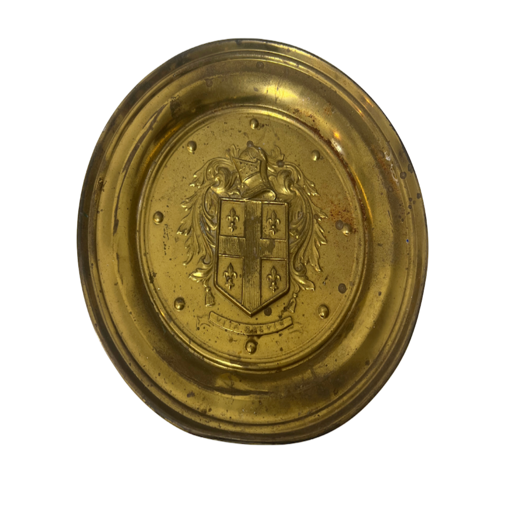 Elevate your décor with this striking vintage brass coat of arms tray. Perfect for displaying on a shelf, coffee table, or wall, it serves as both functional storage and a conversation-starting accent. Whether you're a collector, or simply love classic home décor, this tray brings heritage and elegance to your space.