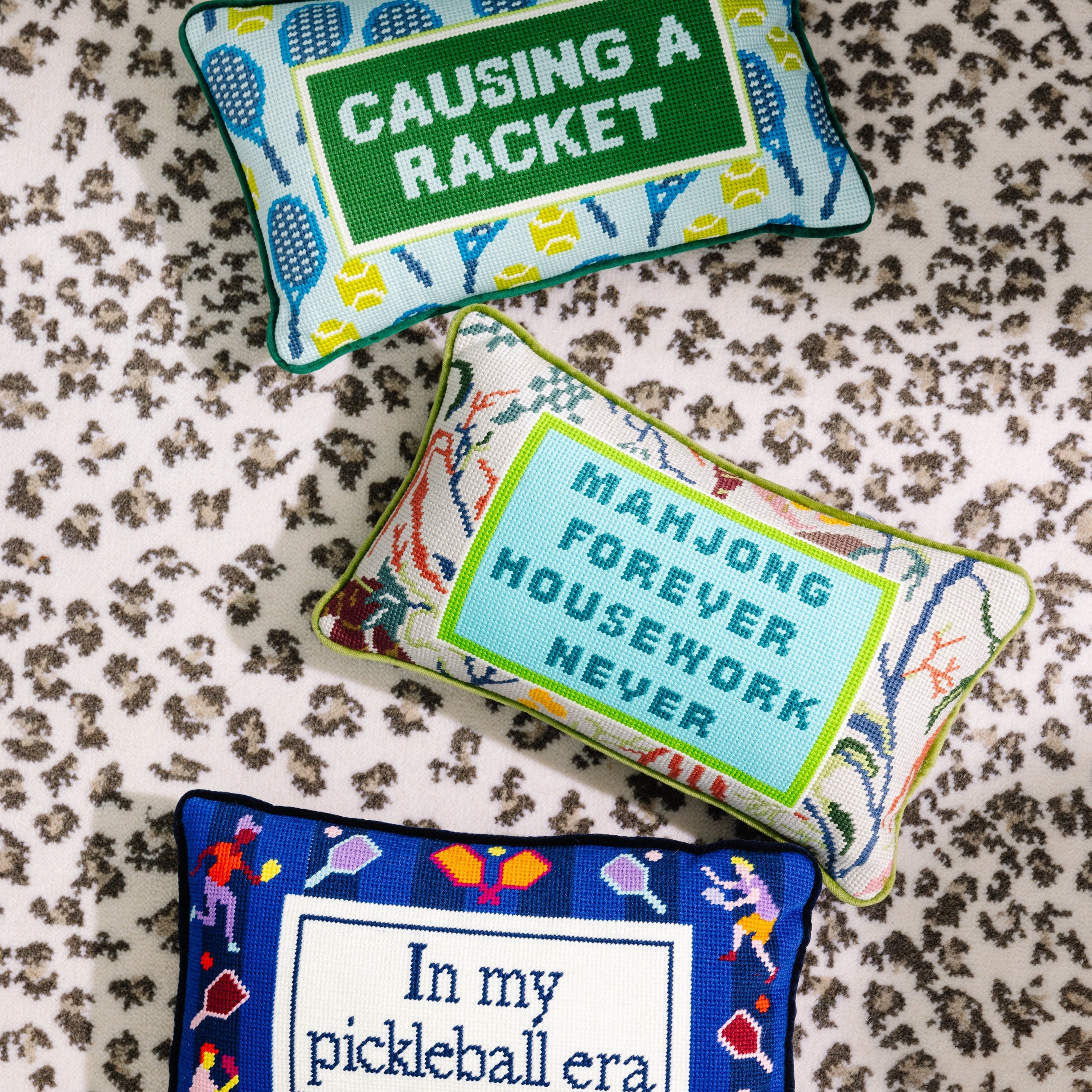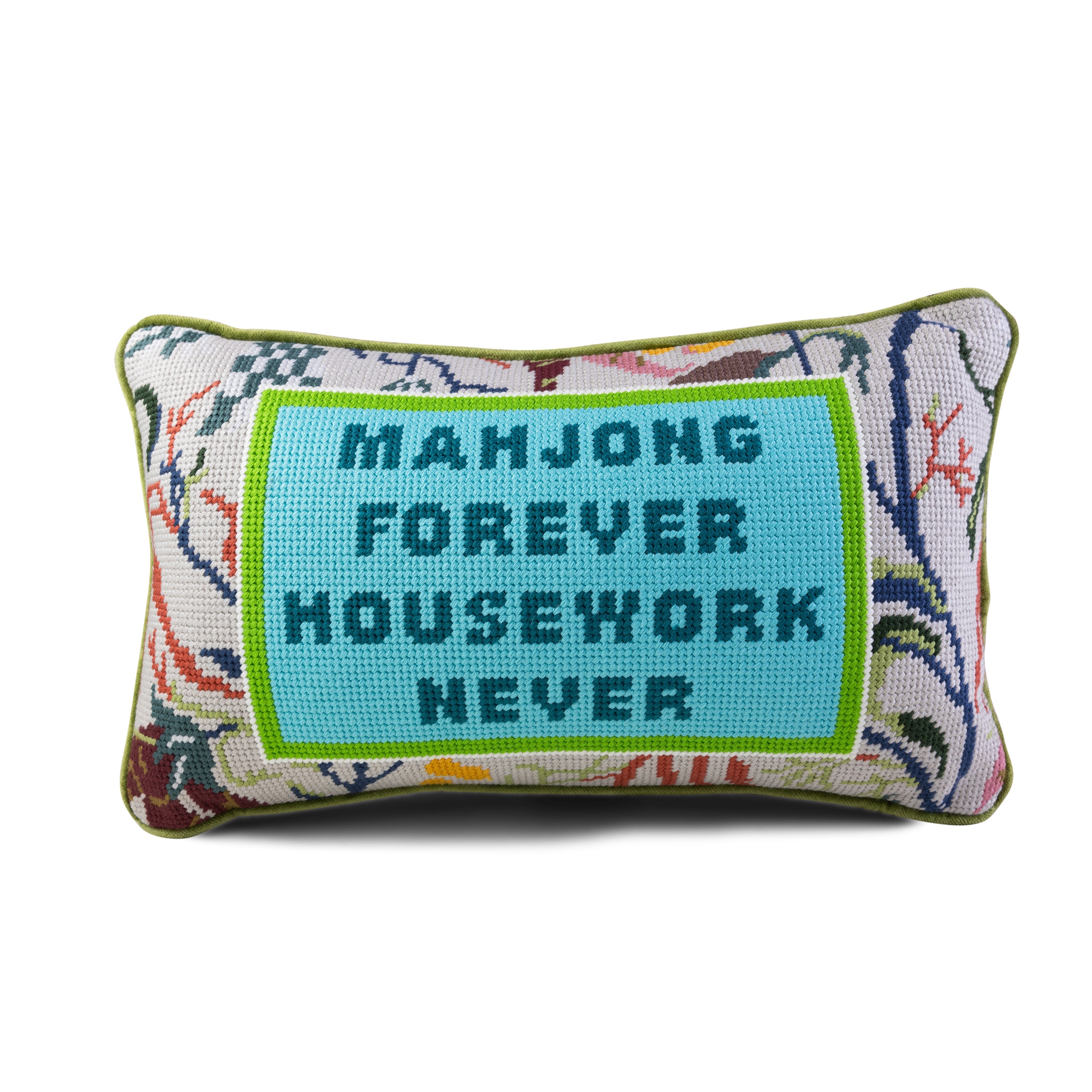 For the ones who know that the best way to spend time is with a hand full of tiles and a good laugh. This pillow is for those who believe in playing Mahjong forever—because a game of strategy and fun beats housework every time.