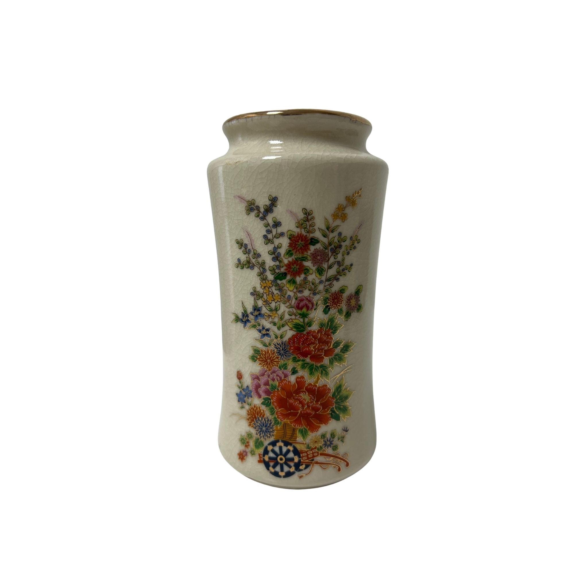 Vintage Japanese Porcelain Crackle Glaze Floral Vase